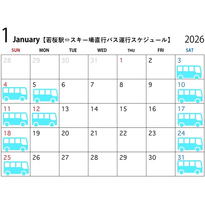 年始1月3日から土日祝はスキー場⇔若桜駅前 100円バスの直行便が運行